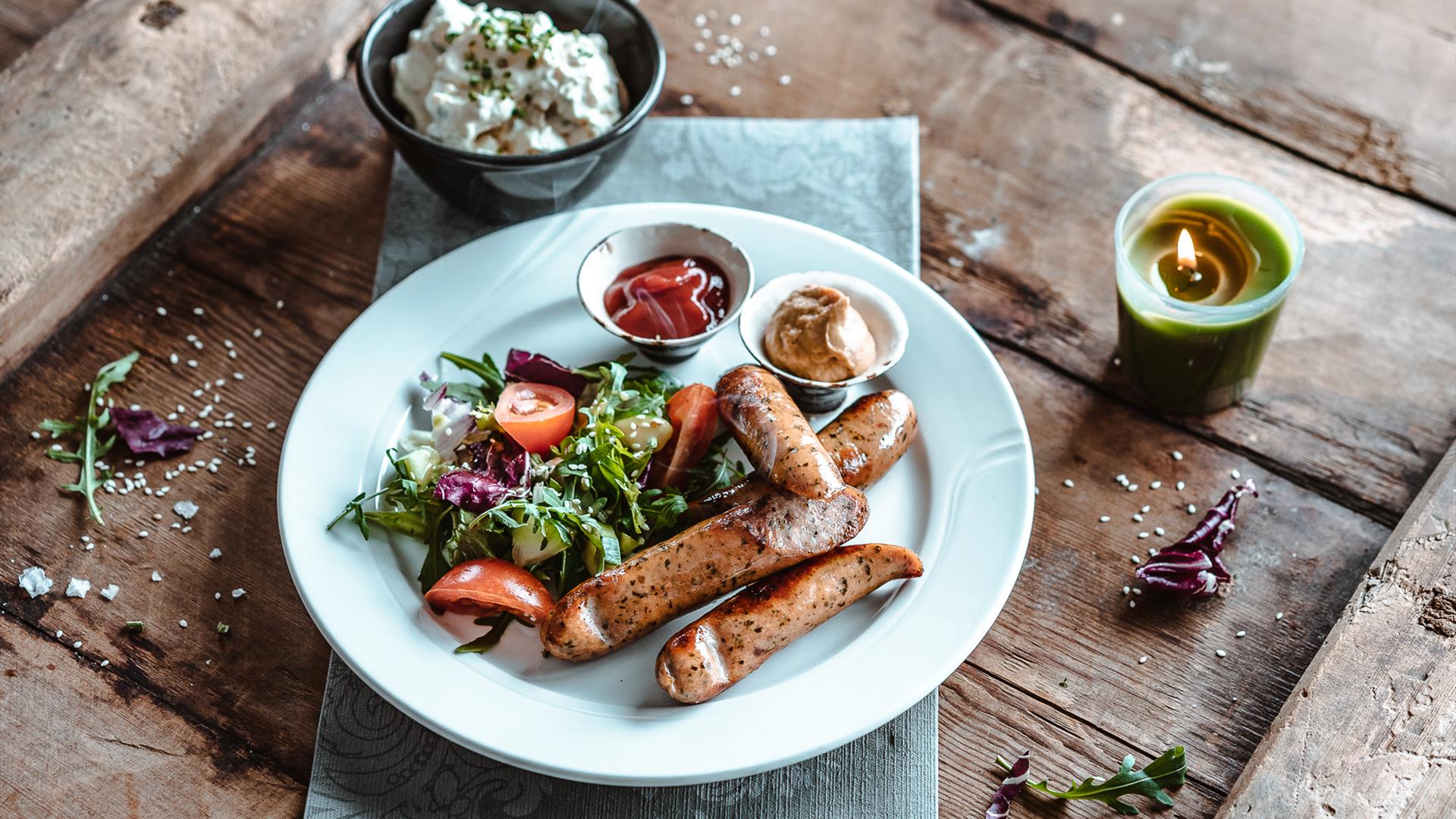 Relax in our hotel lounge bar and café. We have a sun terrace, where you can wrap up with warm rugs in the winter, and a pleasant garden and terrace to sit out in the summer. We serve drinks and coffees along with snacks and bar meals.