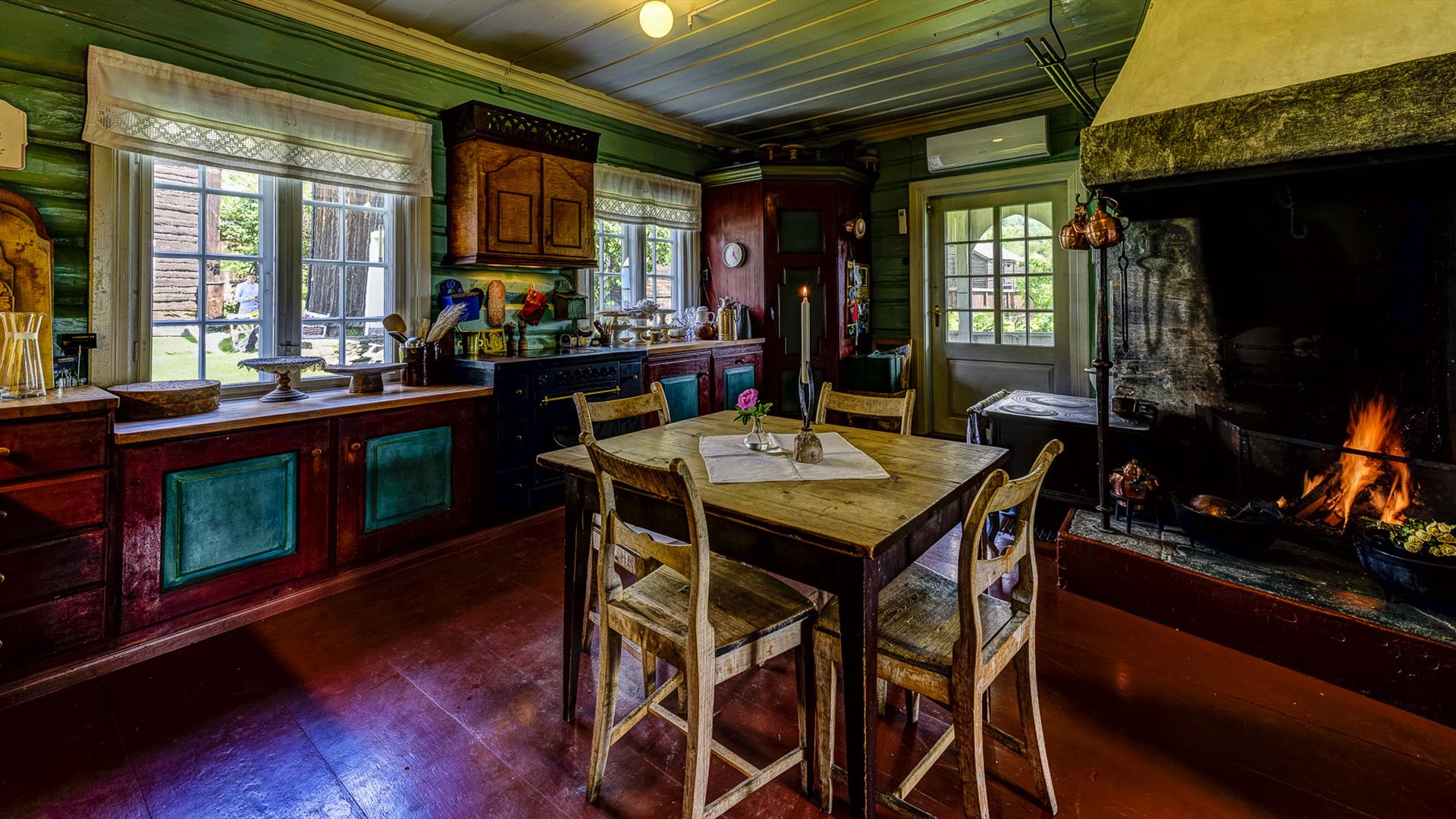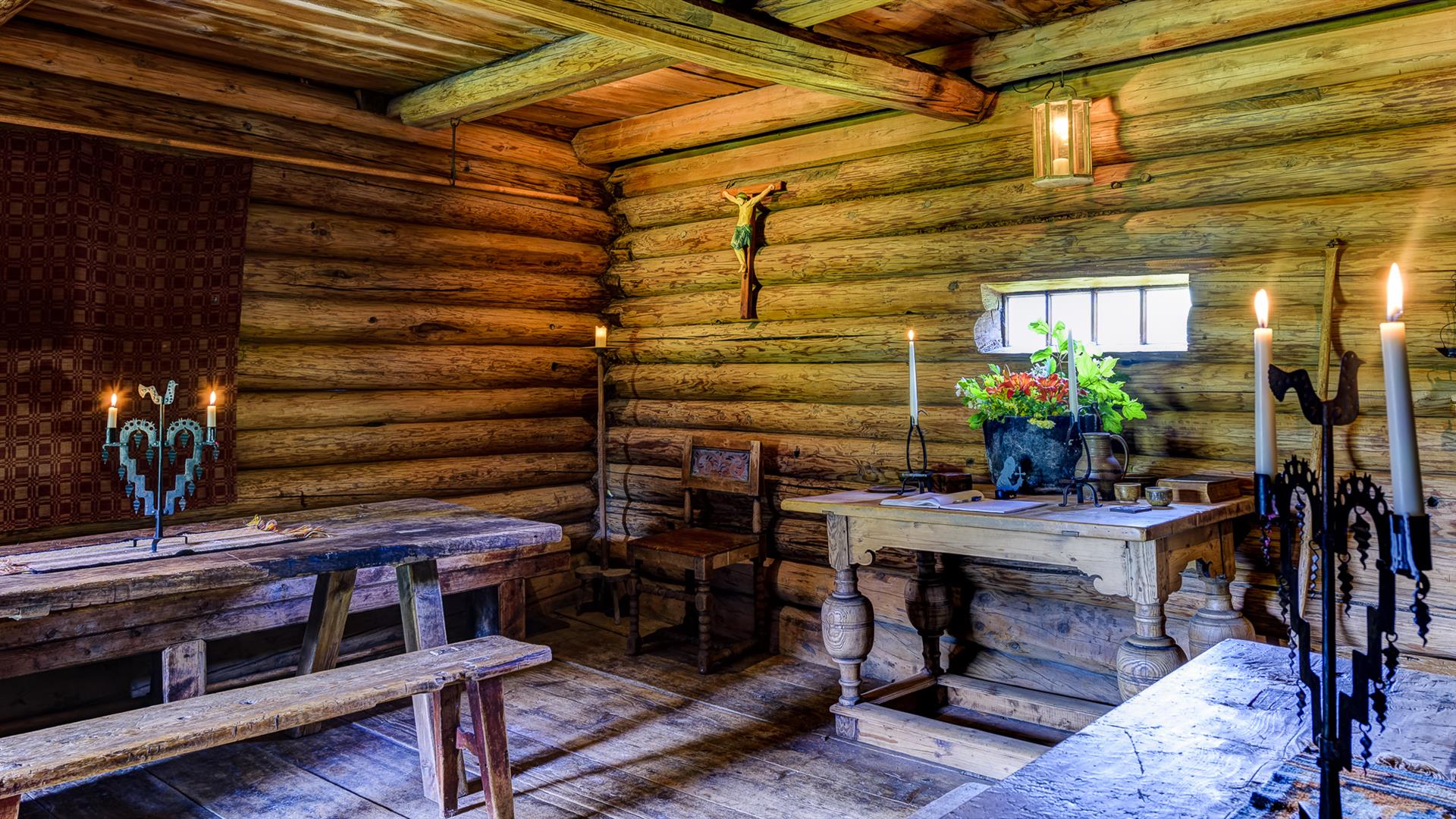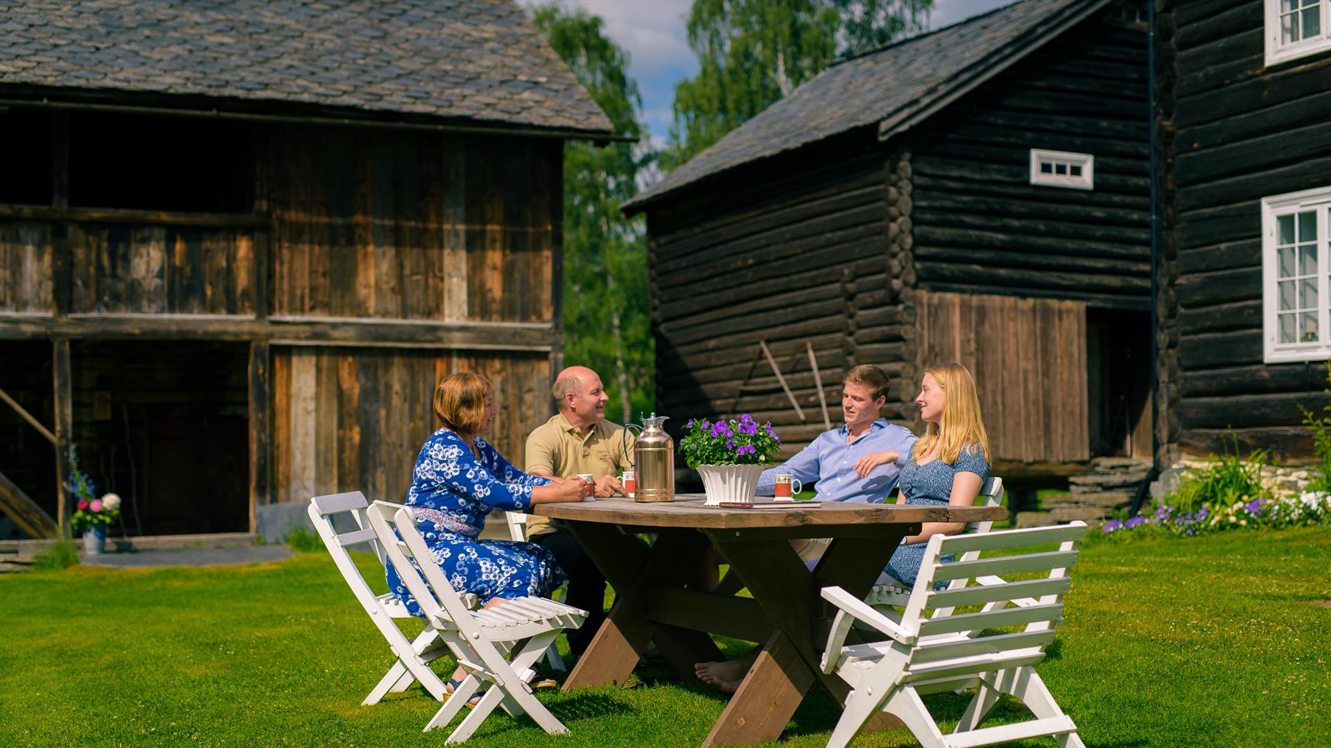Menus will vary according to the season. In summer, overnight guests can enjoy a three-course dinner in Spisestugu (the dining hall) at 7 pm. For weddings or other large functions, we use Høgstugu (the hall). In the medieval inn, we welcome groups for a medieval-style breakfast and supper.
