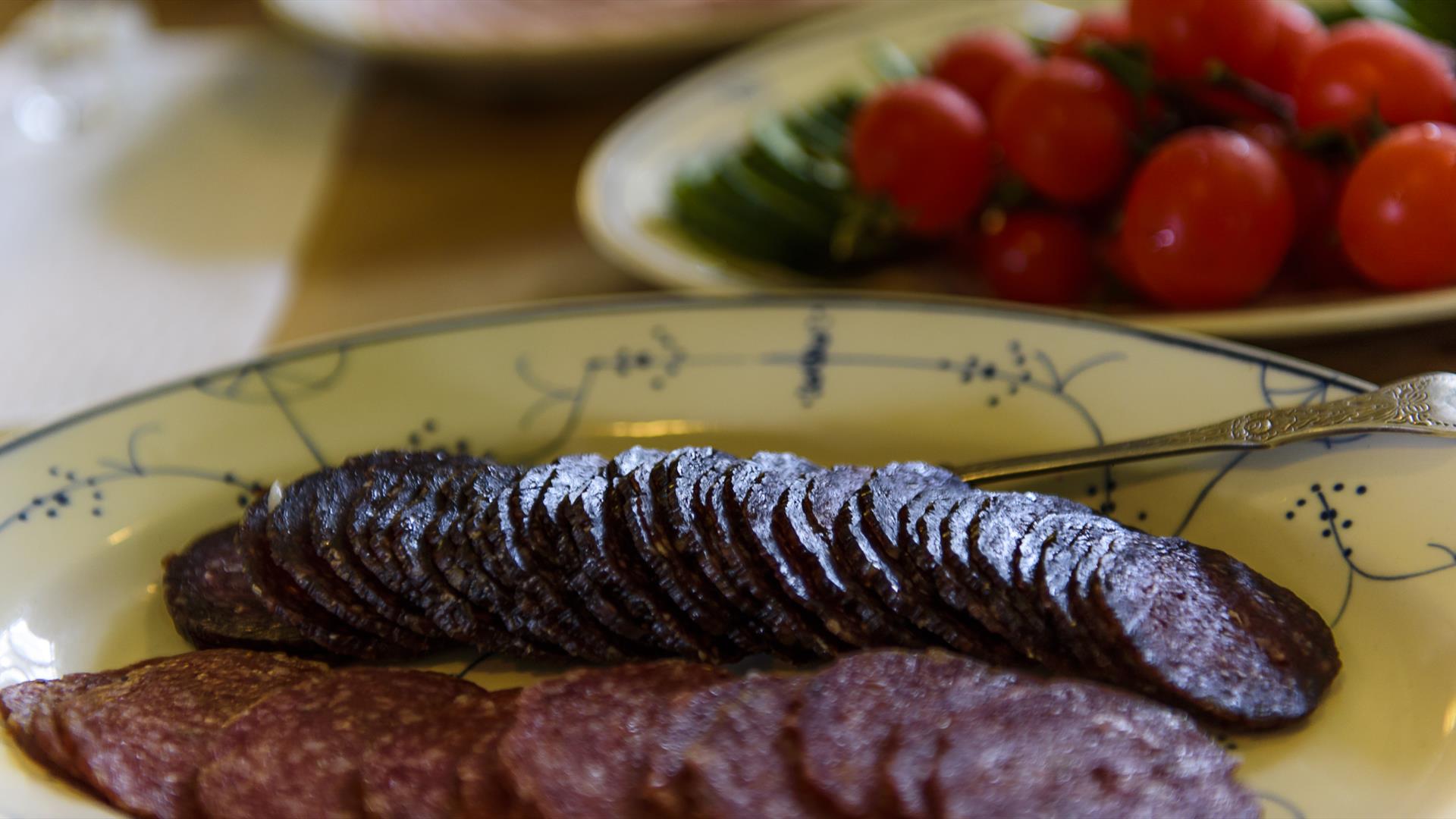 Our dishes are based on meats like lamb, elk and reindeer as well as fish from mountain lakes. Soups and gravy are made from real stock. We serve specially selected lamb from our own farm, accompagied by organic potatoes. The desserts are usually made from berries and fruits from our own garden. Other treats are "sø" and "kål" - traditional soup dishes. Bread, crisp bread and cakes are made on the farm, and all jams are produced here as well.