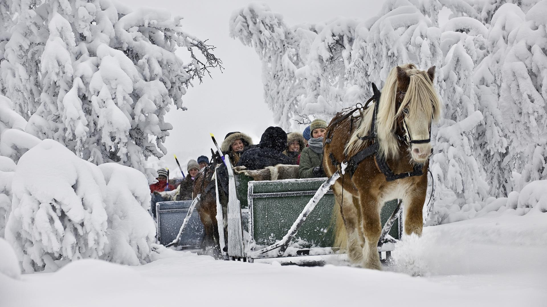 Enjoy a romantic winter experience: a horse drawn sleigh ride through the silent, snowy forest. Sit comfortably under blankets as our strong, steady horses pull you along. After that we gather around the fire in the laavo for a warm drink and storytelling. The tours last about half an hour, and the whole experience about one hour.