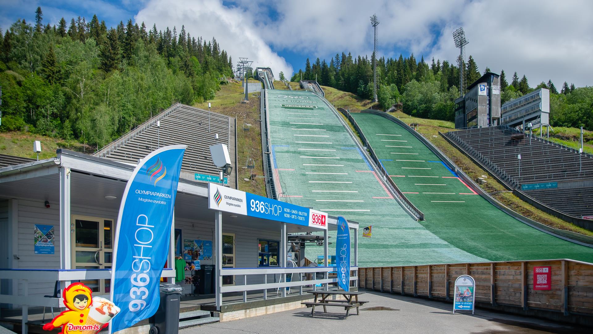 Lysgårdsbakkene Ski Jumping Arena is the city's major landmark. The ski jumping facility consists of a large and a small ski jumping hill - HS 140and HS 90. Both hills are equipped with a plastic coating and are used frequently both in summer and in winter time. During summer, you can take the chairlift from the bottom of the hill up to the top and enjoy the view! In the arena you will find a souvenir shop with a selection of gifts, including special Olympic Park souvenirs.