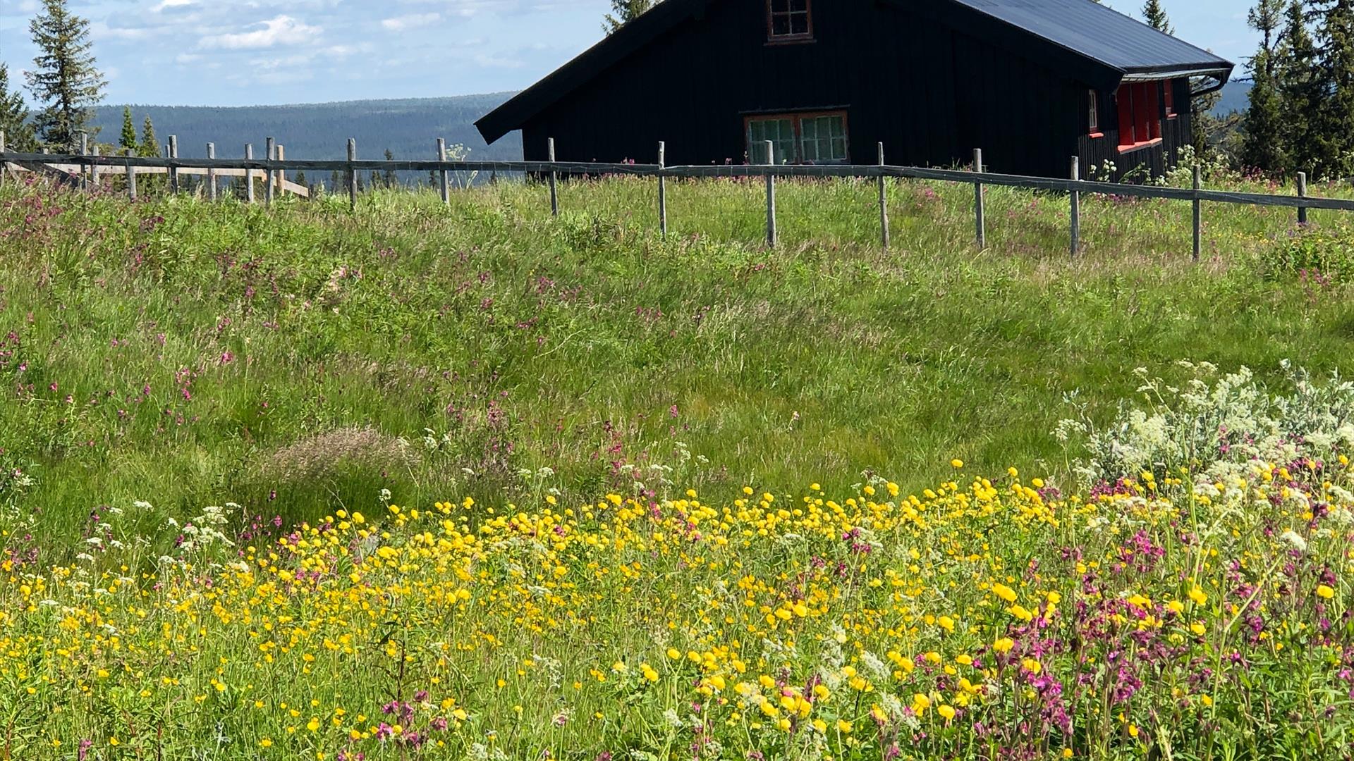 "Distance: Storstilen round-trip: approx. 18 km. Suitable for: Excellent family outing. Suitable for all. The stories about Sjuguttsteinen by Stenstilen and Berthe Putta at Nøkkelåsen add extra excitement for the young. This route covers three authentic mountain farms with approx. three kilometres between each. Gentle terrain all the way. Storstilen, one of the largest mountain-farm areas in the Ringsaker mountain, is a perfect starting point. The scenery and cultural landscape alone are more than enough reason to visit, but the trip comes with the added bonus of the “Berthe Putta” story and the “Sjuguttsteinen” legend. Children in particular will find these stories exciting. But first and foremost, when you park at Storstilen there is a welcome committee – a flock of bleating sheep. With a kind word and a scratch behind the ear, you will make friends immediately. Storstilen The Storstilen summer pastures belonged to farms at both Nes and Ringsaker, and had road connection from as early as 1881 when Thorevegen, which is today’s Birkebeinervegen, was built. When the mountain road from Bergundhaugen came ten years later, it was linked with Thorevegen. This reduced the distance from the village by 4-5 kilometres and thus became the most popular route. From 1900 onwards, mountain dairy farming was in decline and the first farmhouses were sold as holiday homes. Some, however, kept going until the 1960s. Kjos-setra, located at Storstilen, is some 100 years old, and was co-owned by the farms Kjos and Sæter at Ring. The old Thorevegen originally ran between Kjos-setra and Nord-Vea. Down the hill by the stream, there was a shared water-house where the milk was brought for cooling and, during the post-war years, collected by the milk truck. From Storstilen to Stenstilen and onwards to Nøkkelåsen At the junction by Storstilen, turn left towards Ljøsheim. Follow the dirt-road, and before you know it you are at Stenstilen. Continue a few metres to the right, and you will reach an open landscape with a beautiful mountain farm. Take a closer look at the old barn where generations of farmers have toiled. Imagine the sheer number of cows that have passed through this door – and the amount of milk that has been produced. Continue to Nøkkelåsen and the story about “Berthe Putta” Some three kilometres from Stenstilen, you will see the sign for Nøkkelåsen. There is a short climb along the way, but nothing too challenging. After one or two kilometres uphill, you will glide into the stunning cultural landscape of Nøkkelåsen. This is an area truly worth exploring. Take a stroll and imagine bygone days when this was a vibrant community of people and animals. The farm by the edge of the forest is maybe the oldest at Nøkkelåsen – and the perfect spot to enjoy your packed lunch as you take in the spectacular views of the colourful and stunningly beautiful landscape. “Berthe Putta” – woman, man… and hulder Berthe Puttenberg (1854-1928) brought her animals to the pastures at Nøkkelåsen for many a summer. People called her Berthe Putta, and she was renowned for her excellent farming skills. She was also widely known for her delicious sour-milk cheese and exquisite butter. However, Berthe was very different from other women. Ambiguous gender She preferred what was considered men’s work, she had a deep voice, and she was stronger than many of her male counterparts. Berthe always did the heavy lifting, and she had a body built for this. She was big and strong, with sturdy arms and legs. Her voice was deep and her jaw masculine. When she was born, it was said, her parents did not know whether to give her a girl’s or a boy’s name. They chose Berthe to avoid any confusion when she was old enough for national service. Her gender ambiguity was in many ways a personal tragedy and impacted her entire life. Never in public without a headscarf Berthe always wore a headscarf – and she was very particular about its appearance. The knot always sat just under the chin. If it slid down, she quickly put it back in place. One of the few who perhaps saw her without a headscarf was Anders Nordhagen who claimed to once have spotted Berthe having a wash outside. She had removed her headscarf, and he noticed a dark ring of hair around the lower back of her head and on both sides of her chin. Apart from this, she was completely bald. Believed to be a hulder She was once taken for a hulder – a folklore forest creature – here at Nøkkelåsen. Her horse was missing, and she had to go out searching. It was a miserable day – grey and foggy. Two men who had been fishing nearby suddenly saw a woman in a long skirt and headscarf, with a halter around her neck, appearing from the fog. They stopped dead in their tracks, and just as suddenly as she had appeared, she vanished back into the fog. The men were convinced that they had seen the hulder, and their story was wide and far. Awarded the King's Medal of Merit Berthe leased the mountain farm, and when she arrived at Nøkkelåsen it was in poor condition with no fencing and few buildings. With some help from the men known as “Langsvestugukara”, she had soon added a new barn, shed, and smokehouse (for cooking, baking, and washing). The barn and smokehouse erected by Berthe are still standing. In addition to her own animals, she also brought with her livestock from other farms. When Berthe was 70 years old, she received the King's Medal of Merit for her farming work. She was visited by a journalist from the Aftenposten newspaper who asked her to wear the medal for a photo – but this Berthe Puttenberg refused! Between Stenstilen and Storstilen – the Sjuguttsteinen legend When you have finished your packed lunch, had your coffee, and are rolling back down from Nøkkelåsen whilst digesting the story about “Berthe Putta”, you have the return trip to Storstilen to look forward to. Some 2-300 metres before you reach the Storstilen junction